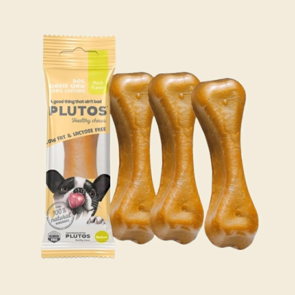 Plutos é um petisco com função de mastigável 100% Queijo. Essa versão é saborizada de Pato, deixando-o super irresistivel.